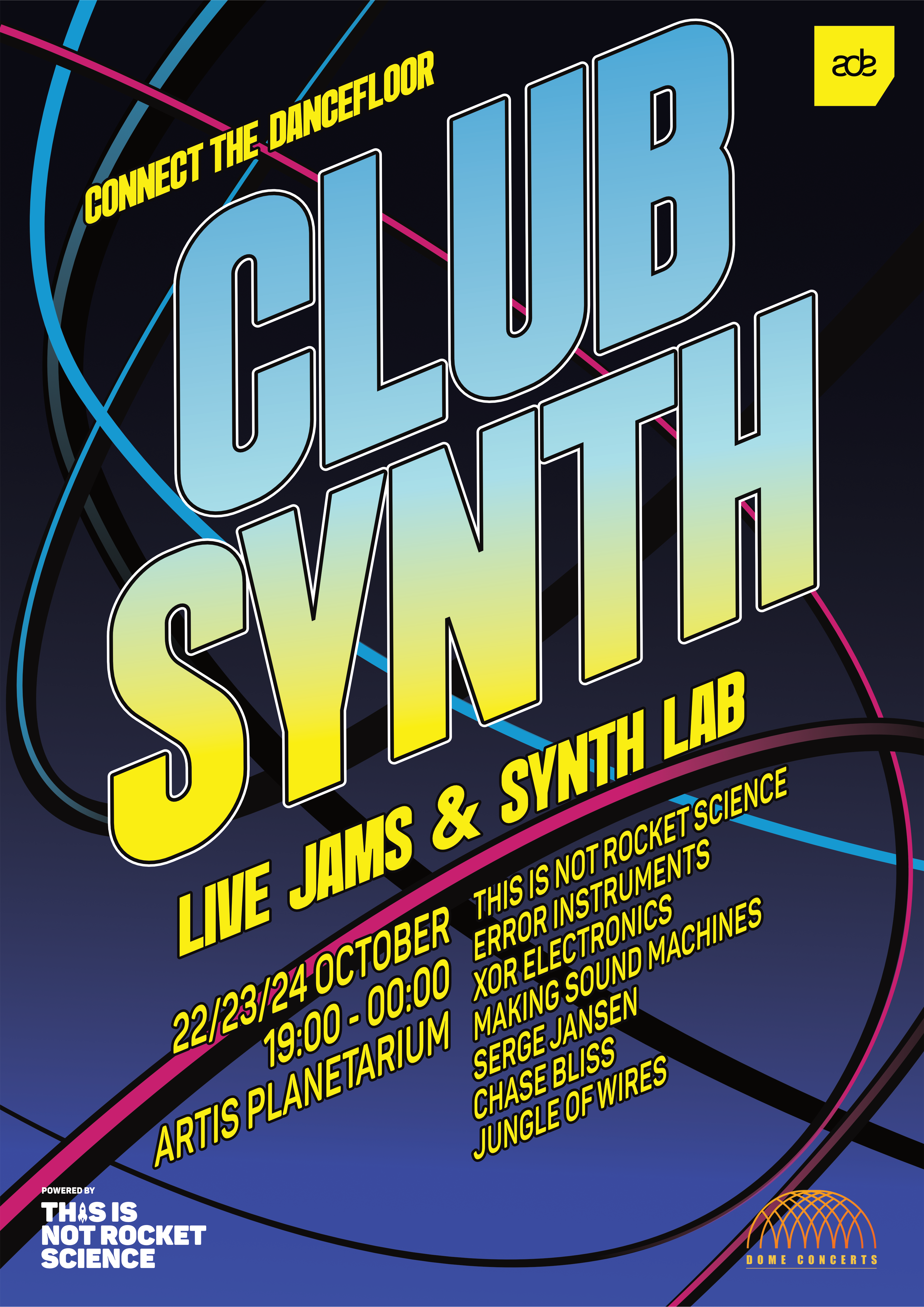 Together with Dome Concerts we are hosting a little CLUBSYNTH on 22/23/24 oktober between 19:00 and midnight at the Artis Planetarium. If you are going to one of the amazing concerts in the Artis Planetarium then entrance to CLUBSYNTH is included in your ticket.